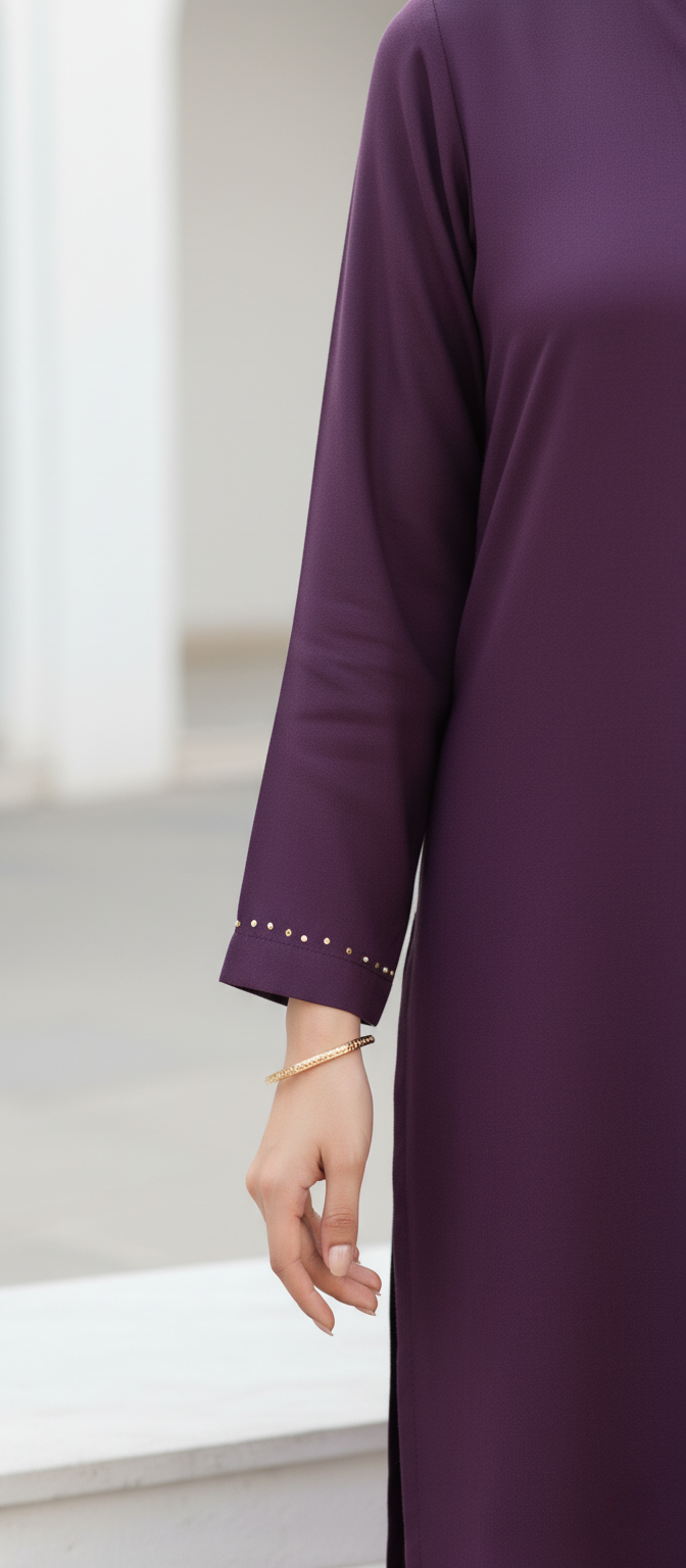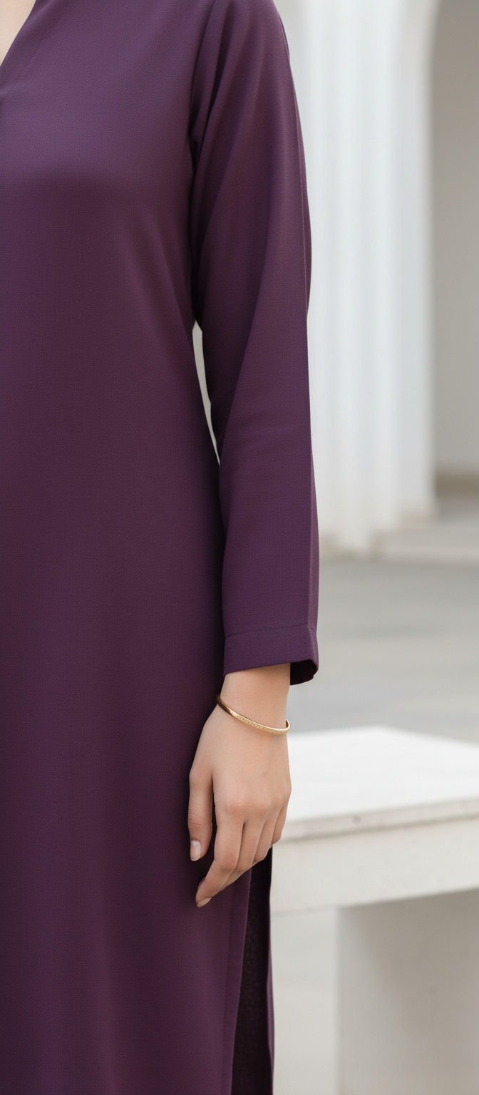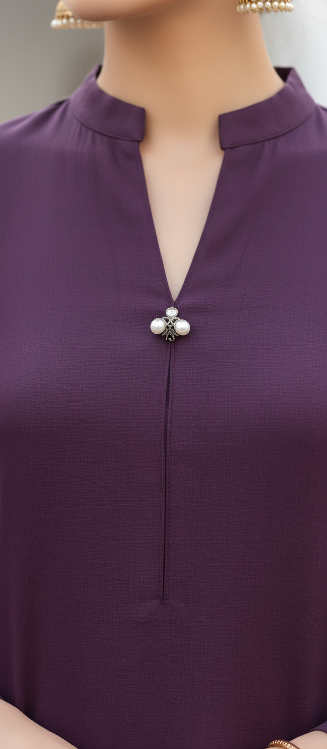 Stay effortlessly elegant with this Arzoo 2PC Suit made from soft and flowy georgette fabric. The solid deep plum tone with a graceful neckline and straight trousers gives a refined, modern look. Lightweight and comfortable, it’s perfect for office wear, casual outings, or everyday elegance.